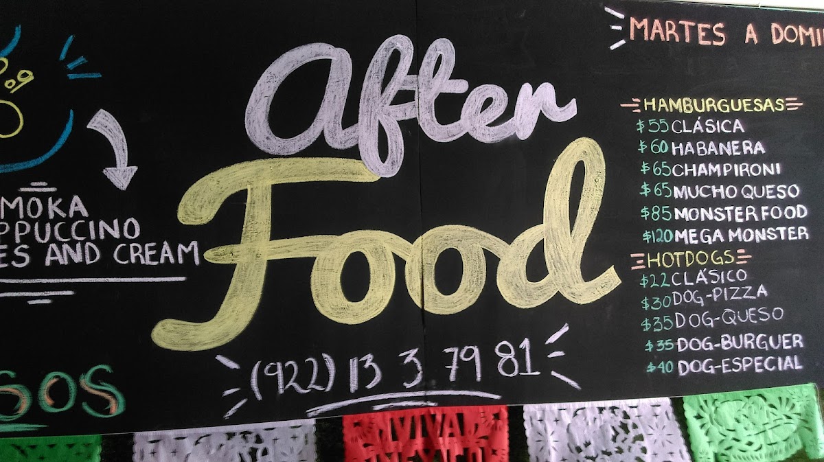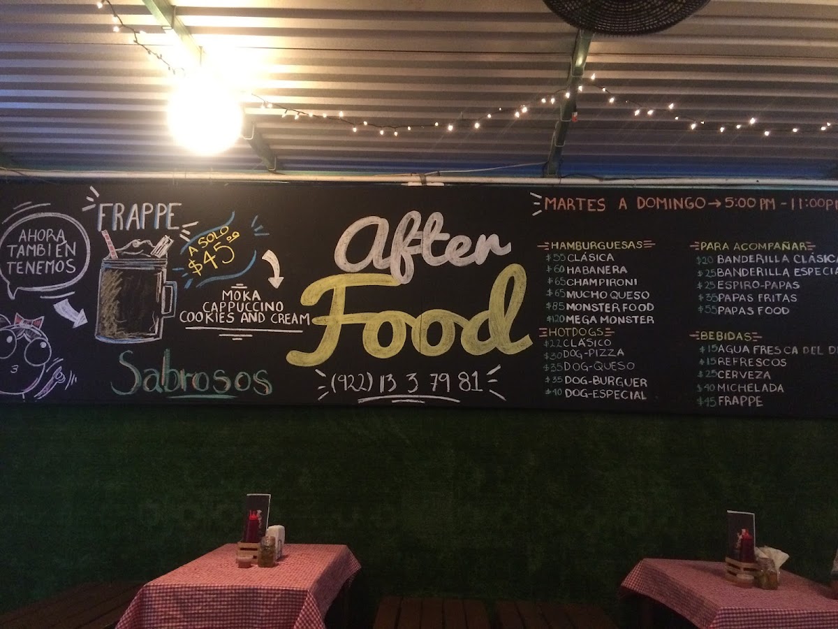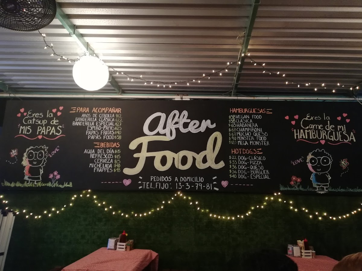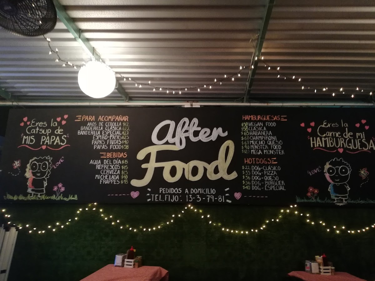 Welcome to AFTER FOOD, a delightful culinary gem located in Minatitlán, Mexico. While it may be a compact venue, the flavors that emerge from its kitchen are anything but small. The menu boasts a variety of snacks, including unique offerings like banderillas and spiro potatoes, which have garnered rave reviews for their taste. Customers appreciate the extensive drink selection and detailed menu, although some have noted that service can be a tad slow during peak hours.